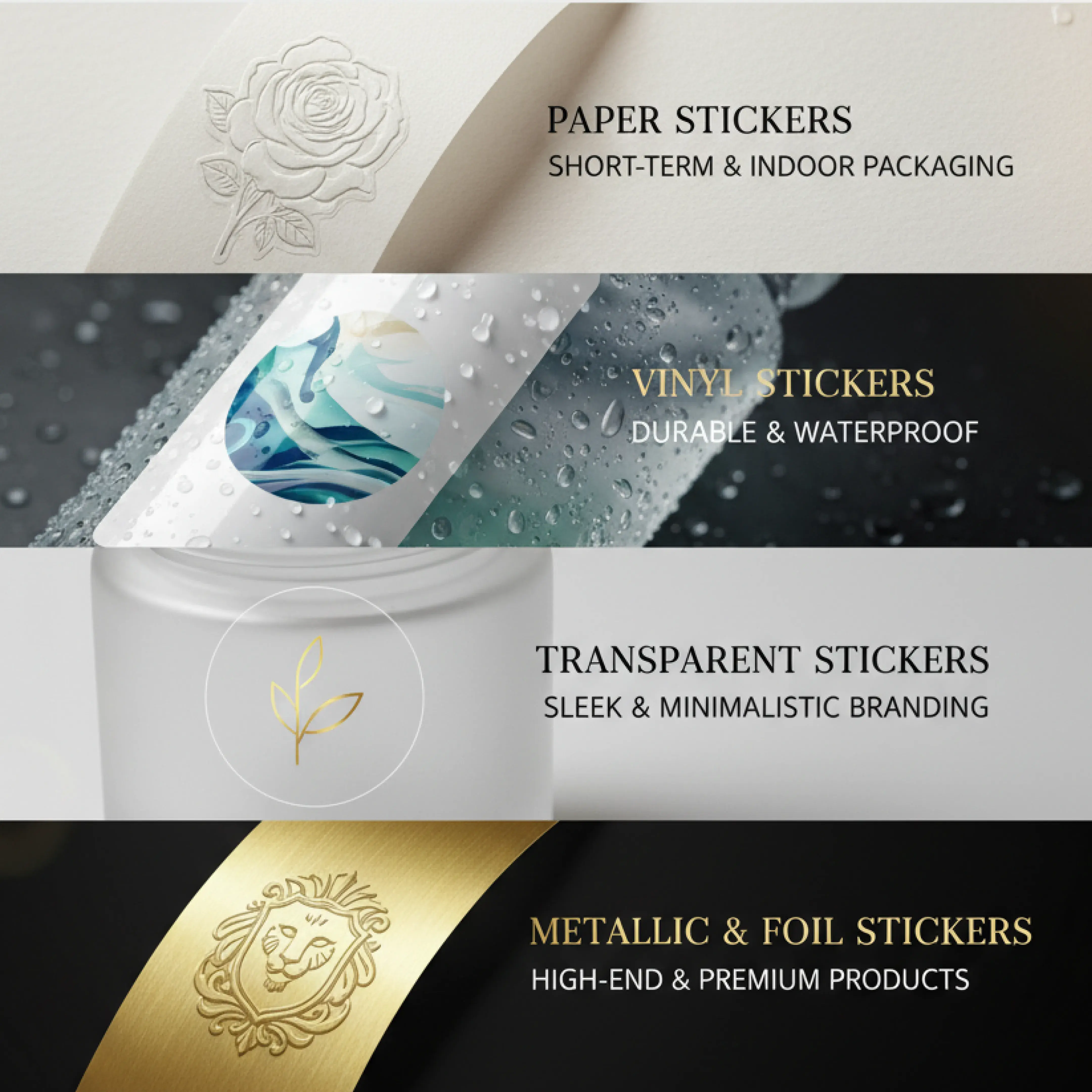 Metallic & Foil Stickers : Perfect for luxury and high-end products.